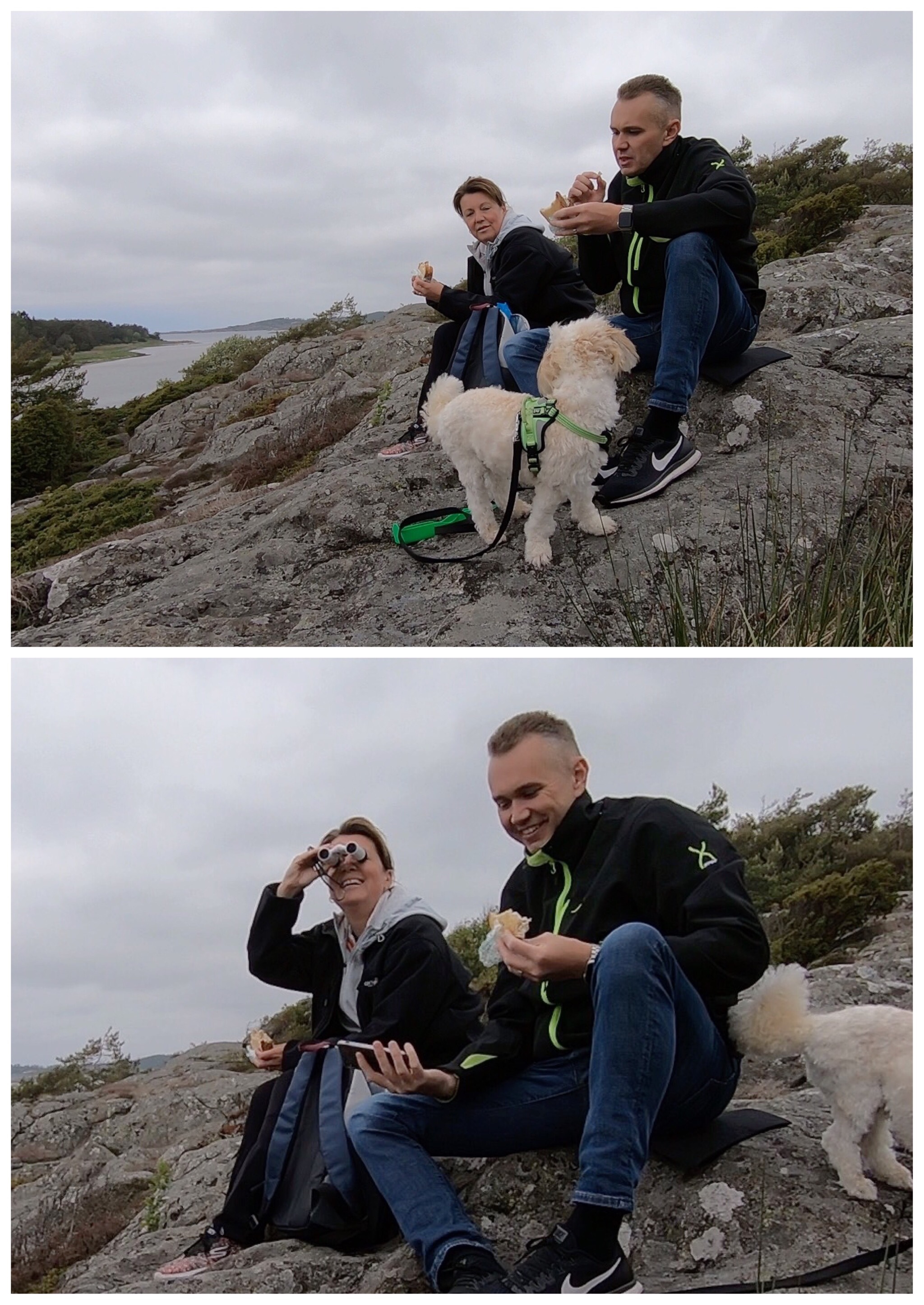 Vi satt oss istället och åt upp våra mackor, självklart åkte ju kikaren fram 😂, finns så mycket roligt att titta på – inte alltid bara fåglar 🤣