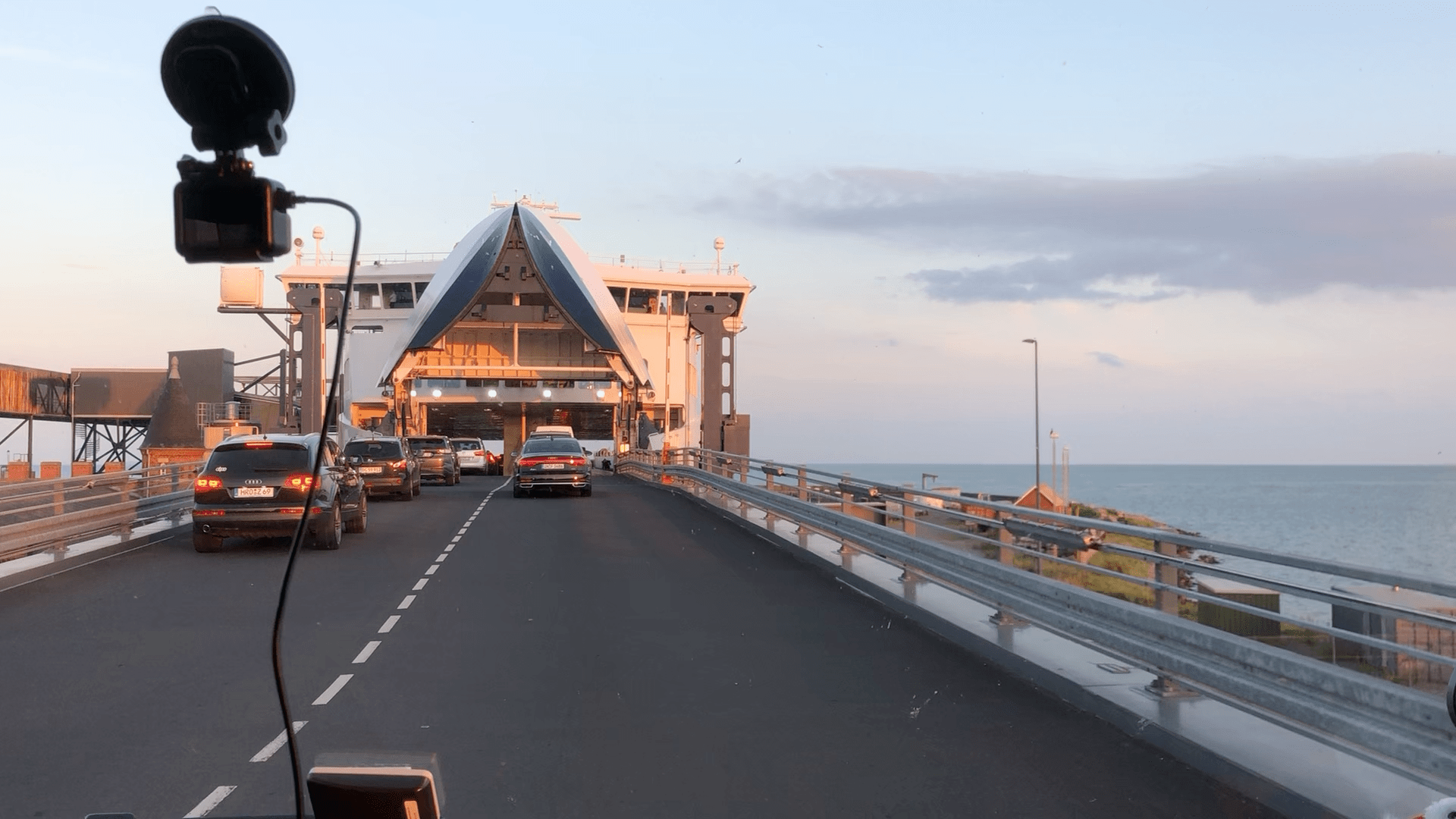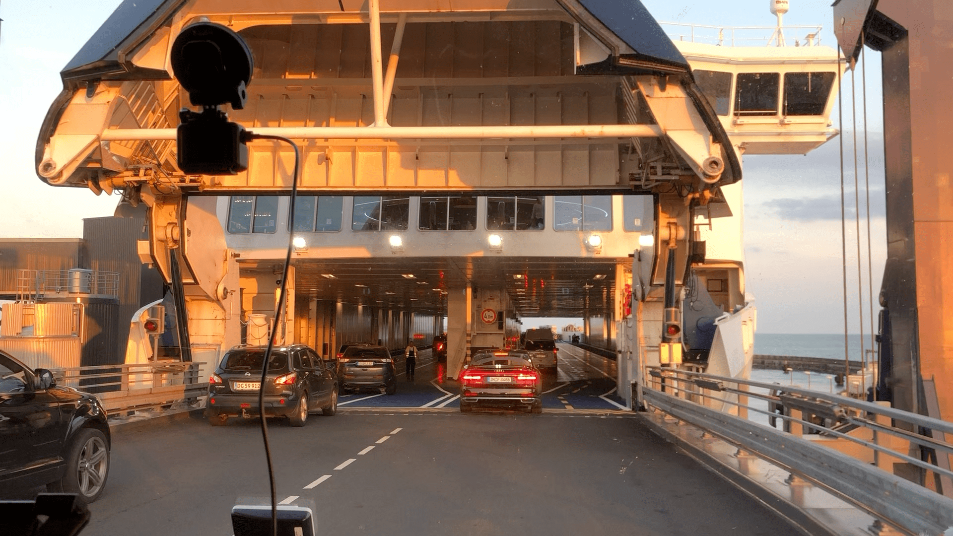 Hade hoppats kunna ta färjan kl 19:15, men trafiken var rätt tjock så det blev en stunds väntan i Gedser istället och strax före halv tio fick vi köra på