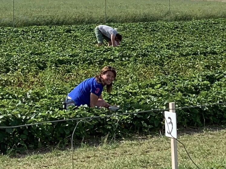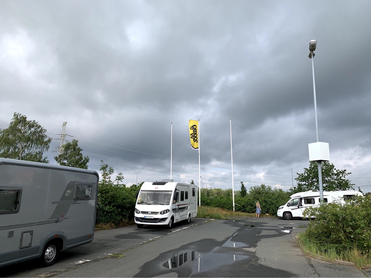 OCH inte nog med det! Det var ren och skär lycka när vi såg skylten med ”jordgubbar” precis bredvid ställplatsen!!! Ja alltså det stod ju inte jordgubbar… det heter det ju inte på tyska!! Men i alla fall… vi gick dit, och kom på att man kanske borde haft med nått att plocka i… men vi hade ju hundbajspåsar!! 🤣 Allvarligt! Det var det vi tänkte! för vi ville verkligen ha jordgubbar! Men tanten i ”lådan” hade papplådor man kunde plocka i 🤣 så vi knölade ner hundbajspåsarna i fickan igen!