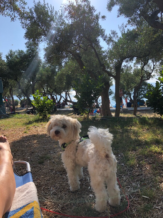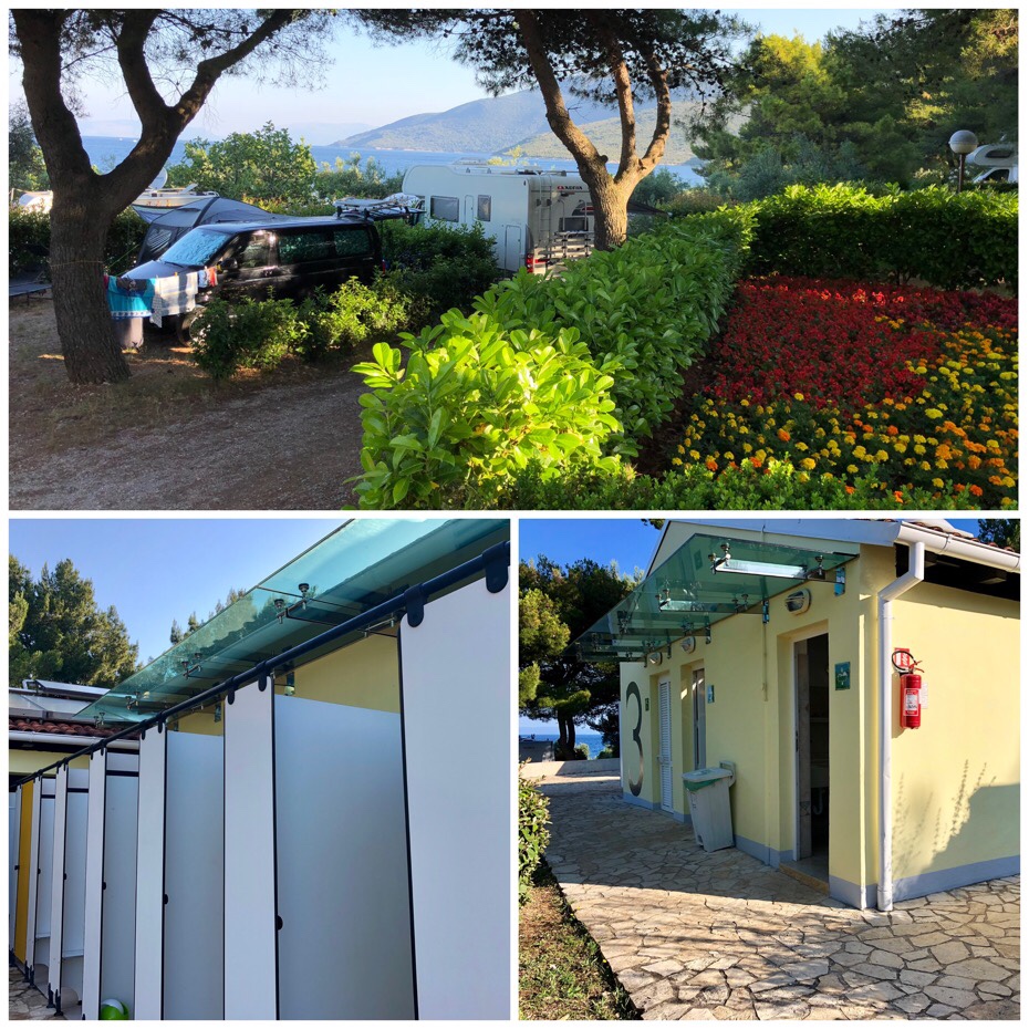 Nu har vi installerat oss lite här på camping Kovacine, och lärt oss att hitta både till affären, pizzerian och servicehuset, allt på behaglig avstånd från husbilen 😜.