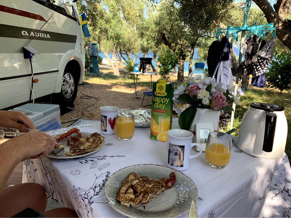 Ikväll är planen att vi ska gå in till Cres och äta middag med ett par andra husbilsvänner som oxå är här på campingen 😊, men först blir det nog lite mer sol och bad 🥰