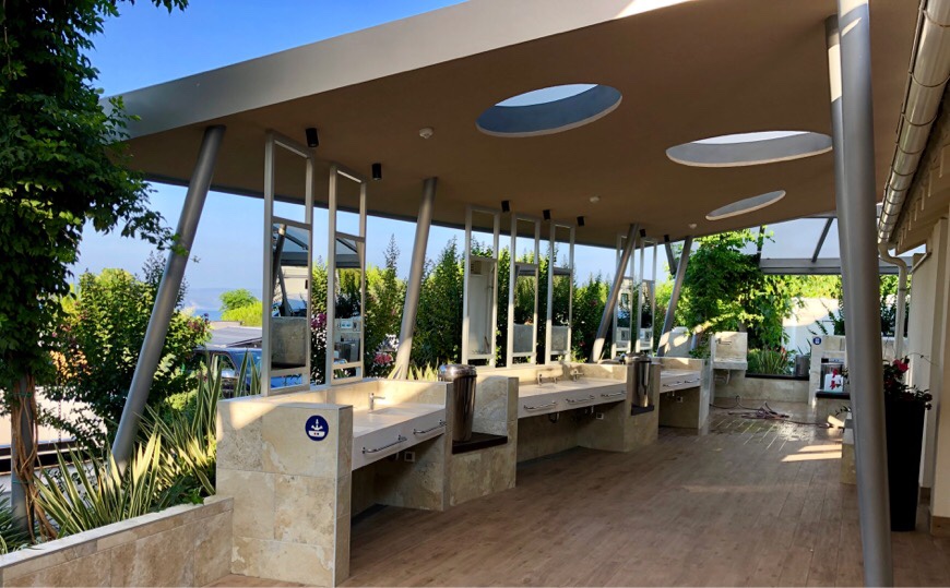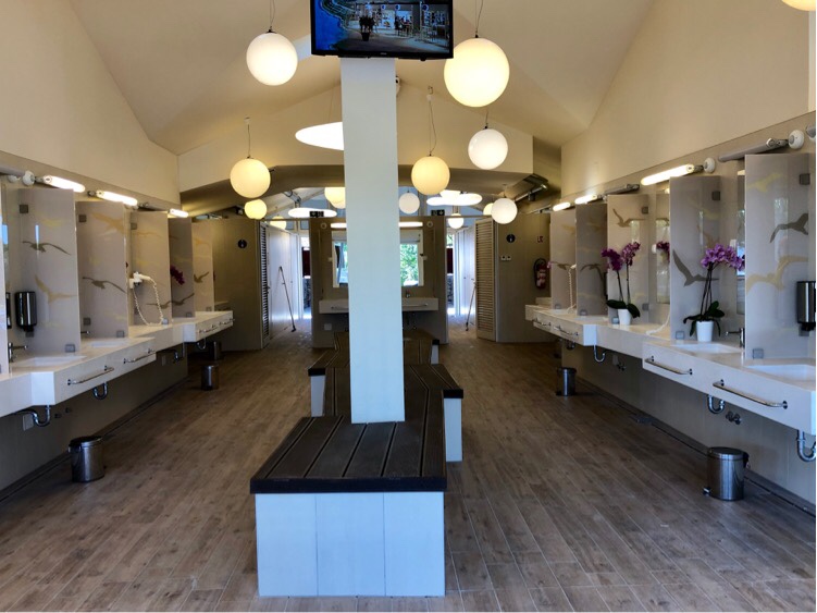 Toaletter för sig och duschar för sig 👍🏻 (på förra campingen kunde man stå och duscha bredvid en som satt och…. ja ni vet 🙈)