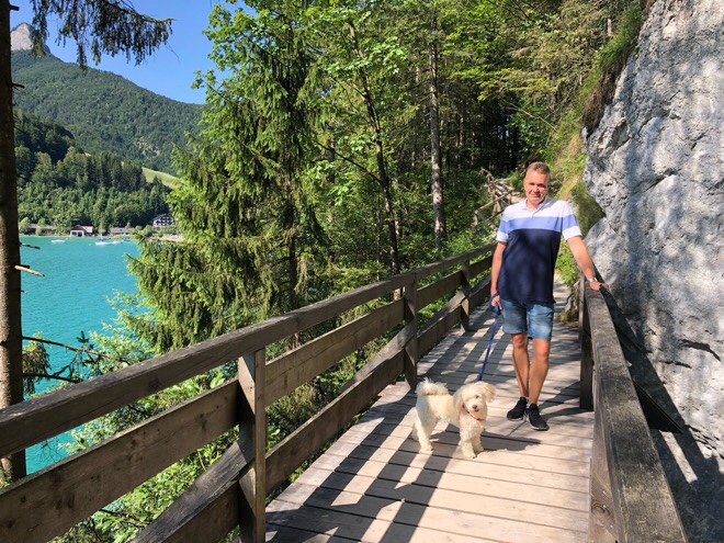 Att ha hund, ja det verkar vara farligt i Österrike, men tur han var snäll på tåget..😂.