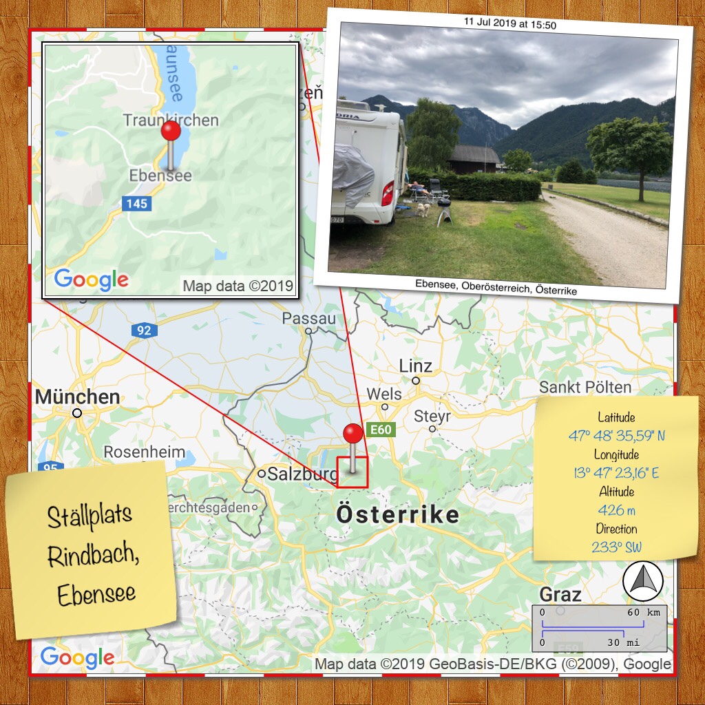 Idag har vi flyttat oss till Ebensee, som vi fått rekommenderat. Blev en härligt kort resa på ca 40 min från en sjö till en annan 😂👍🏻.