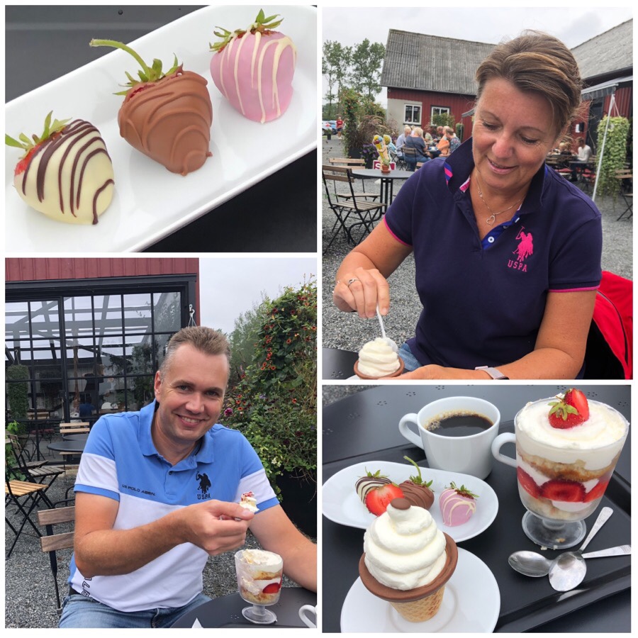 Fick sockerchock typ, ögat ville ha ungefär 300 gånger vad magen ville 🙈. Ska sanningen fram är varken jag eller Micke några ”fika-människor”, men jordgubbar e jordgubbar 😍. Tur vi kom för sent till den där buffen tror jag 😂.