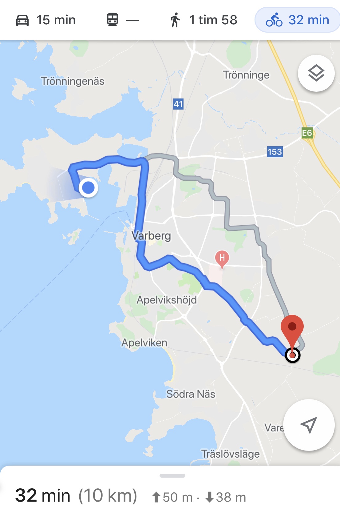 Enligt väderprognosen var det minst risk för regn runt lunch. Även om mörka moln såg hotande ut runt hela Varberg, tog vi chansen och cyklade in mot stan 🚴🏻♀️.