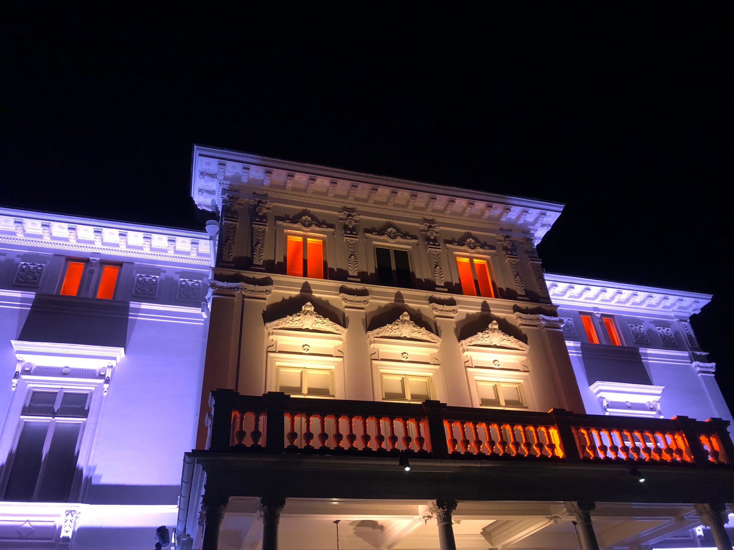 Framåt halv sju var det helt svart ute, och dags att gå rundan. Jag hade laddat ner appen, mest för att inte gå vilse , men döm av vår förvåning – man behövde inte gå vilse alls! Dels var det väldigt mycket folk som gick, och dels var slingan utmärkt med små gröna blinkande lampor – hela vägen!! 👍🏻👍🏻👍🏻