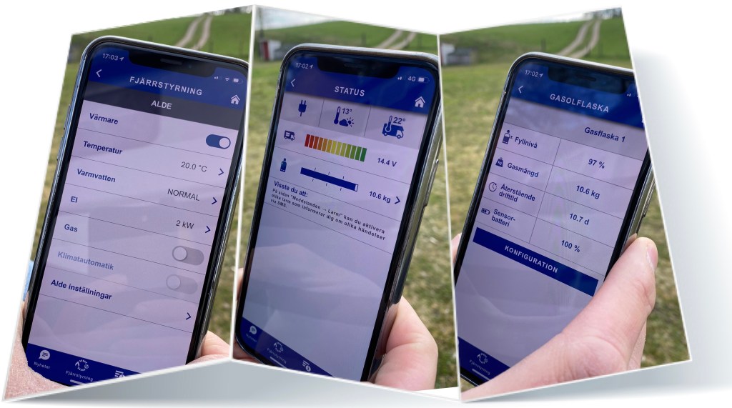 Den nya Alde panelen var ”iNet-förberedd” och Micke var ju inte sen att beställa en iNet-box och en ”level control”, så att han kan fjärrstyra panelen via bluetooth / sms samt ha koll på nivån i gasflaskan.