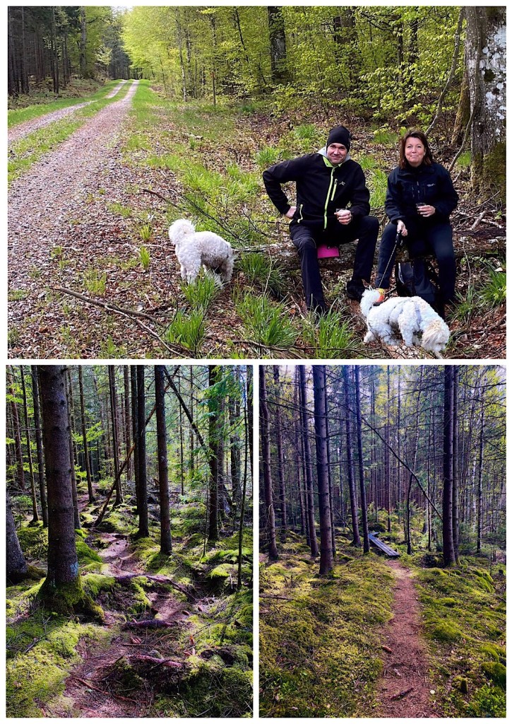Framåt eftermiddagen gjorde vi ett nytt försök och gick åt andra hållet – den blev efter en bit bättre!!! Det är så man vill det ska vara – gå på stigar i John Bauer-skog 🥰 (nedre bilderna ovan)