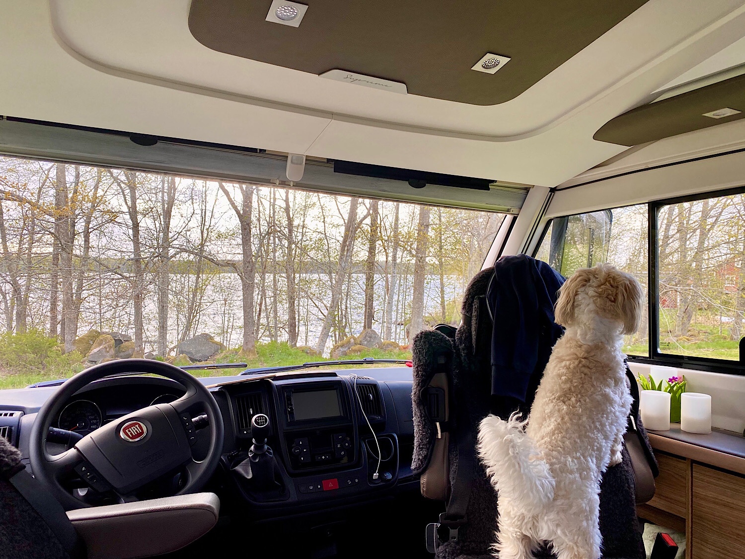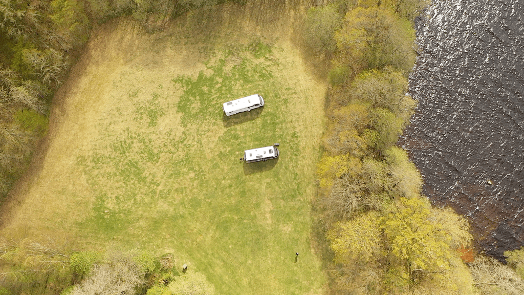 Tillbaka vid husbilen igen hade det kommit en husbil till. Micke körde upp drönaren för att se om han kunde ta några häftiga bilder.
