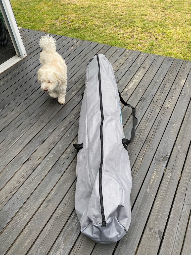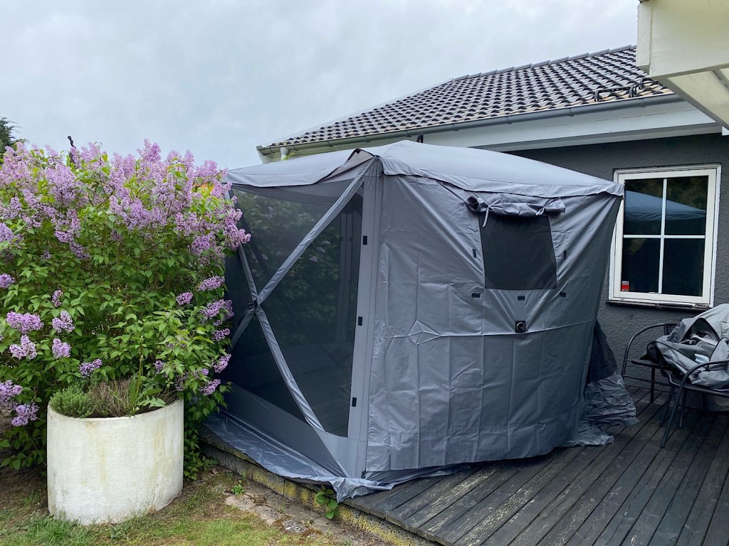 Fick tips här på bloggen om ett fristående tält – mot mygg, kvällskyla och lätt regn! Googlade, mätte och funderade! Slog till!