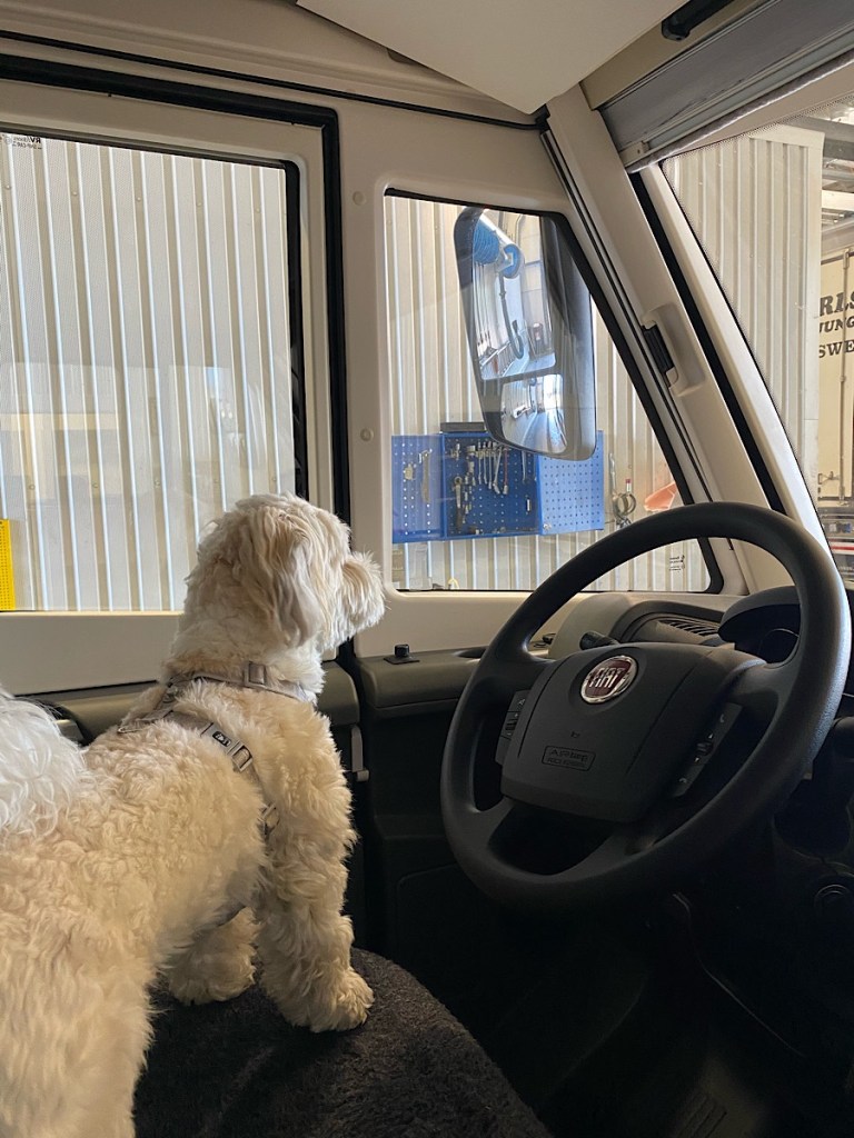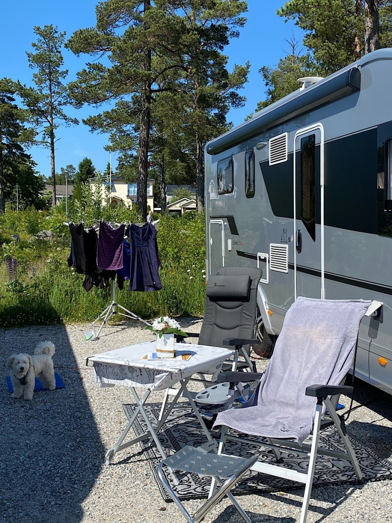 Lämnade ställplatsen runt halv nio i morse, varpå en annan husbil som stått och lurpassat utanför – direkt körde in och tog vår plats!!! 😮