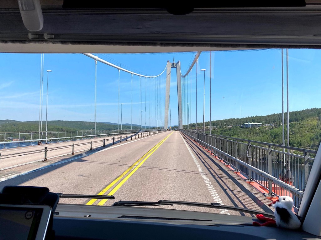 Efter att shoppat lite förnödenheter i Sundsvall, for vi vidare uppåt längs E4an – över Höga kustenbron som man hört så mycket om. Delmål 1 ✔️ och egentligen det enda… för sen har vi varken planerat eller än mindre bestämt, vart vi ska styra skutan 🤪.