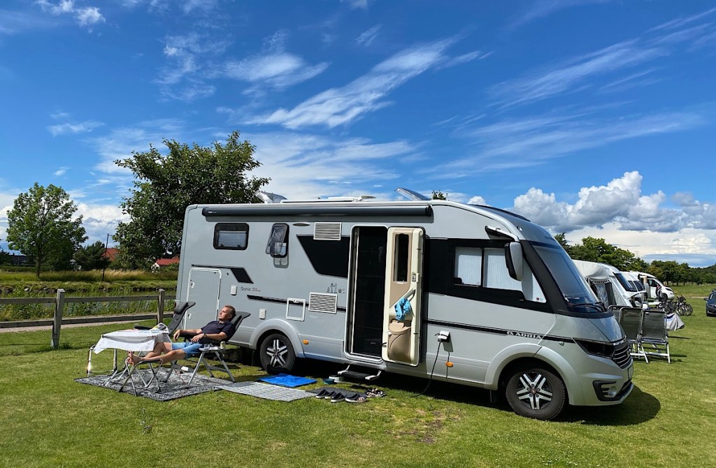 Stanna två nätter någonstans 😳? Vi? 🤣 Sagt å gjort! Jag vet inte hur många gånger man gjort samma saker… Ut med bord stolar, äta frukost, in med allt igen, säkra skåp och lådor. Stödben, klossar, elkabel, checka ut…. och iväg 😰 Semester – man undrar ibland 😂. Å andra sidan är vi ju oftast överens om att vilja dra vidare – se mer – nått nytt – förhoppningsvis ännu bättre!