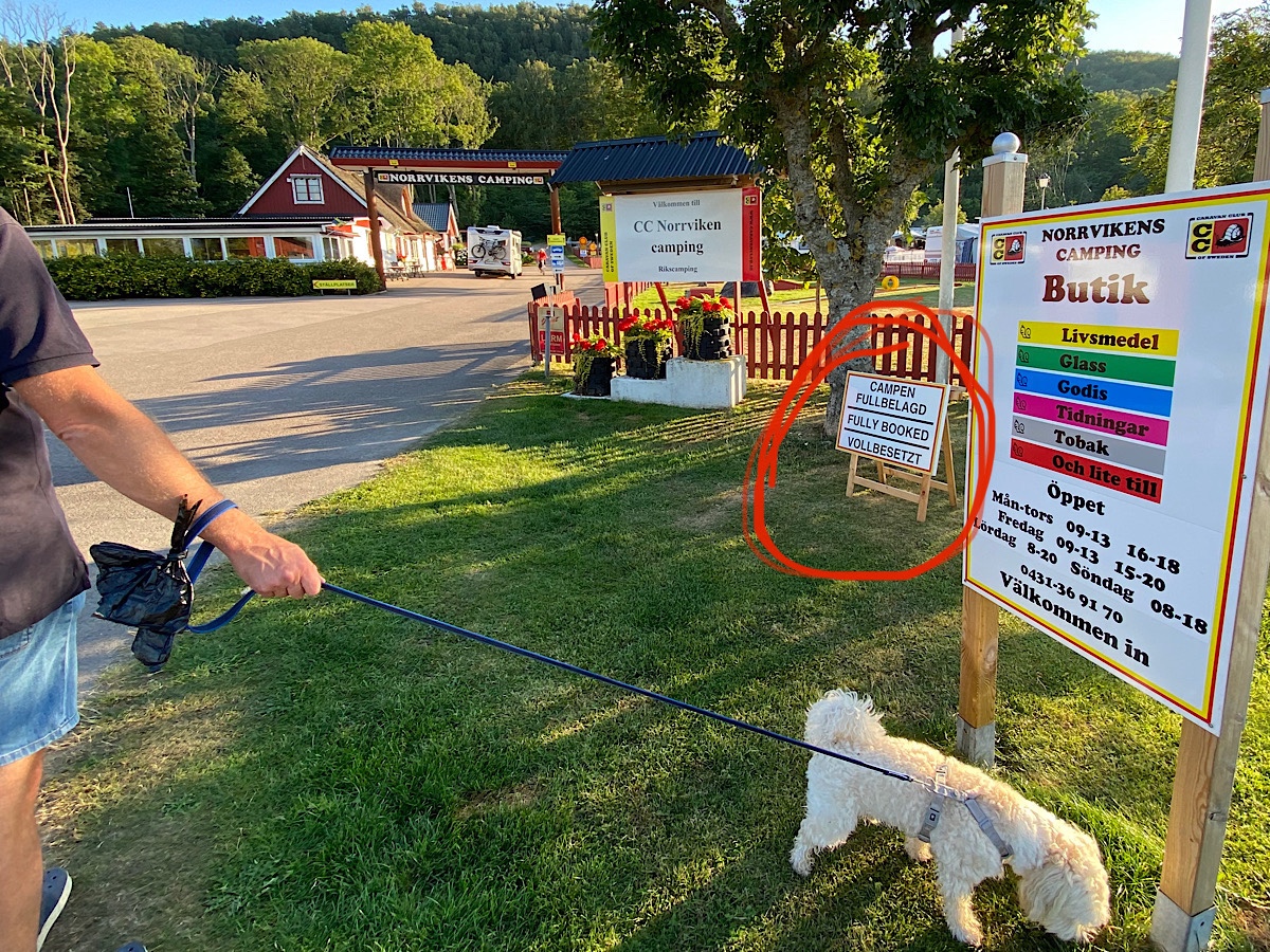 Det var tur vi bokat, för campingen var fullbelagd 🙈. Helt galet fullt överallt nu verkar det som, så har man inte bokat, har en enorm tur eller kan köra och ställa upp sig redan måndag middag är det nog rätt kört – men visst förstår man! Alla vill ju ut nu när solen och värmen äntligen kommit!! 🥰