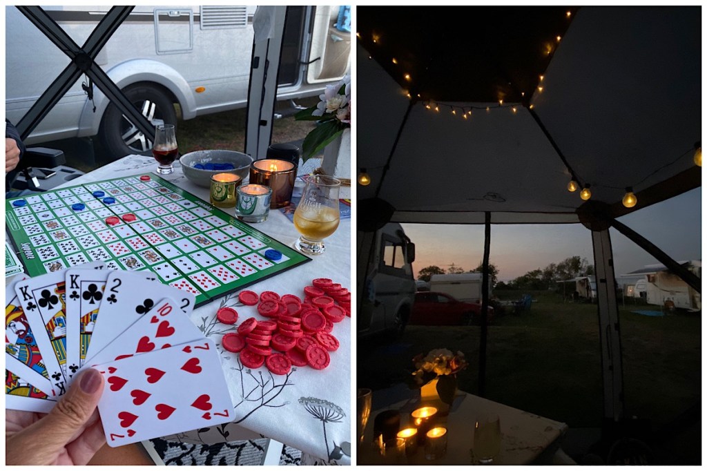 På kvällen åkte tältet upp och det blev några parti Sequenze. Micke älskar spela spel – not, men jag tvingar honom 😂. Tror jag kan omvända honom, det går så där… försökt i 7 år men skam den som ger sig….