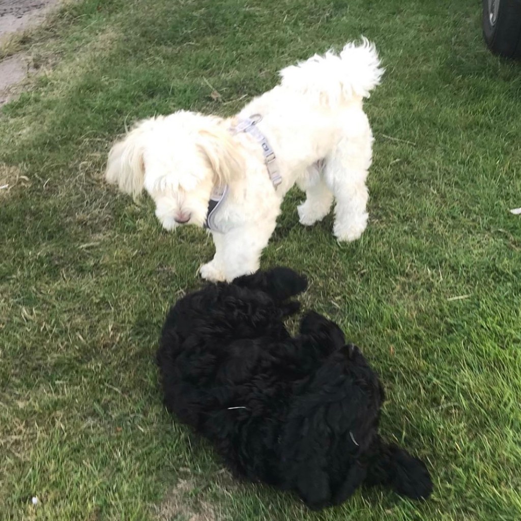 På campingen stod även Tina och Jim som har bloggen ”Hobby on the Road” och Binkan fick träffa deras lilla valp Alvin.