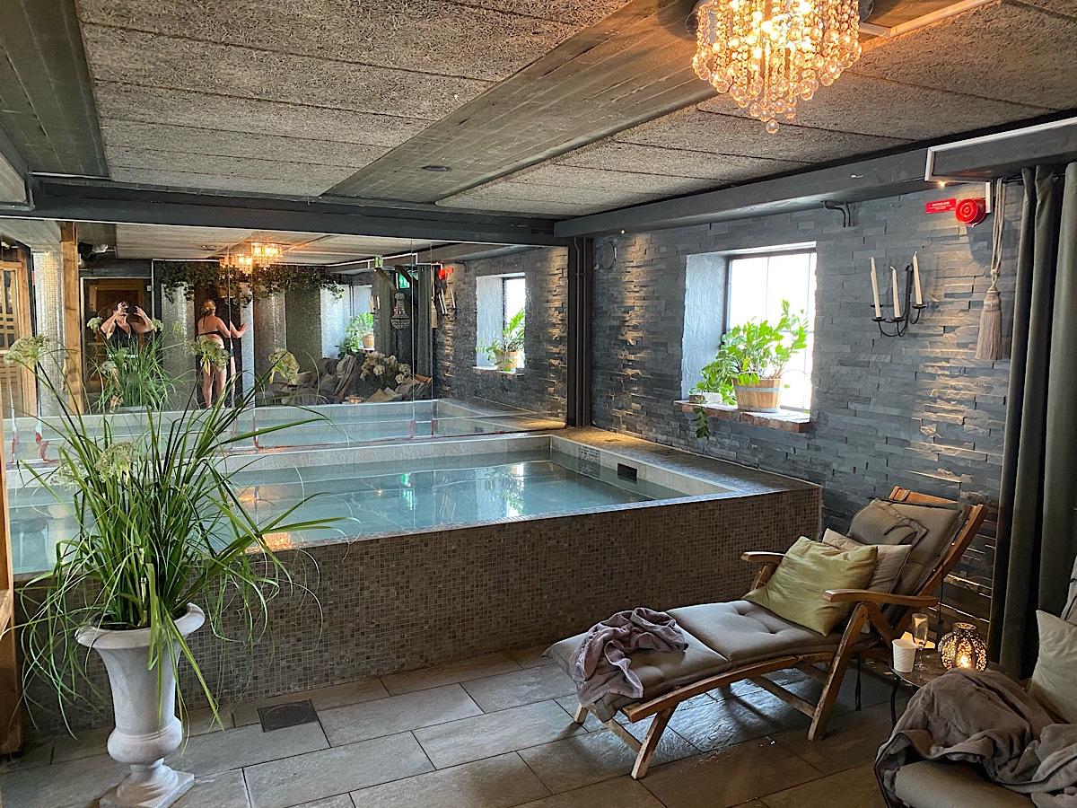 Efter det gick vi ut i utomhuspoolen – varm å go 🥰
