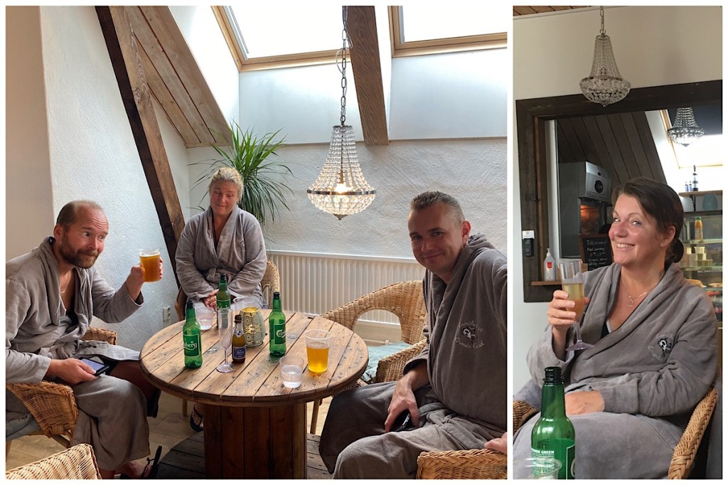 Allt var Corona-anpassat! Max 5 st i bubbelpoolen, 8 st i utomhuspoolen o s v. Gissar det var väldigt mycket väntetid där framåt eftermiddagen 🙈