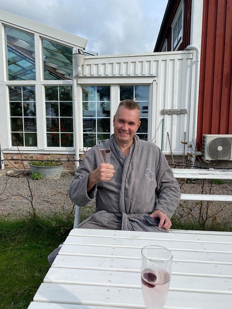 För ett tag sedan bokade vi Weekendlyxpaketet på Lögnäs gård denna helgen med Roger och Lena 🥰🥂