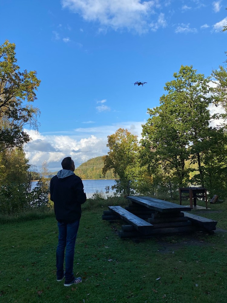 Riktigt häftigt väder fick vi vid Hjörneredsjöarna – Micke var lyrisk och drönaren åkte upp och ner 😍