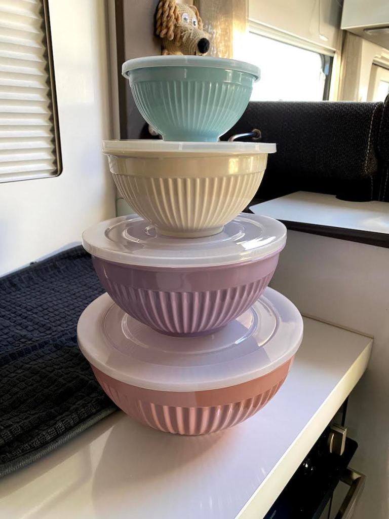 Bytt ut våra ful-fula plastburkar till fin-fina melaminburkar i husabilen 😍.