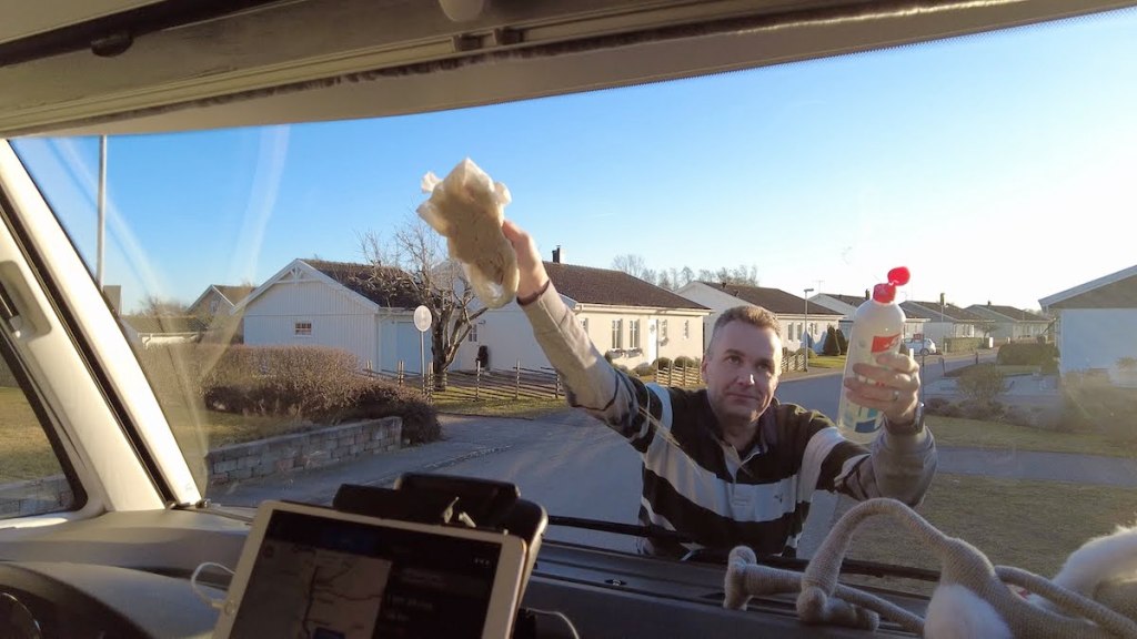 Bra service vi har hemma på gatan – plötsligt dök det upp en gubbe och började putsa rutan 👍🏻.