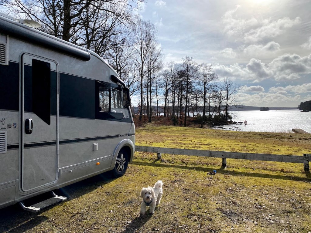 Runt middagstid började det blåsa mer och mer och även om vi inte ville, lämnade vi Marstrand 😢. Vi satte siktet mot lite fricampingplatser inåt landet.