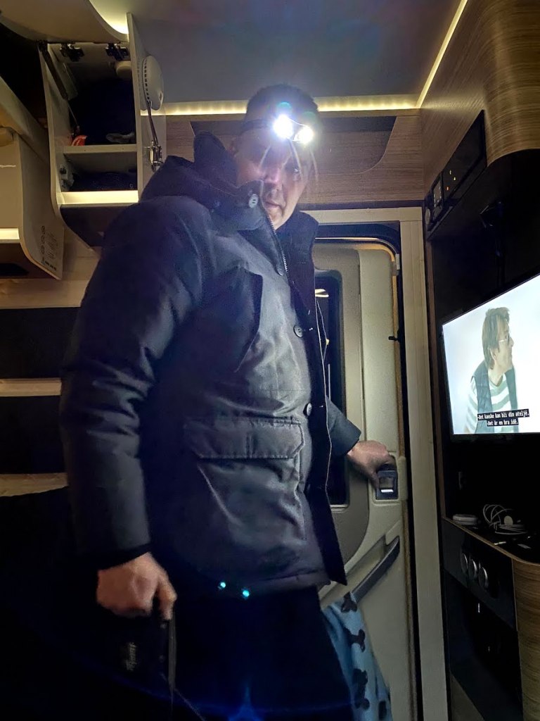 Det blev helt kolsvart runt oss framåt kvällen – inte en enda lampa såg vi ens på avstånd. Tur man har pannlampa när Binkan pockar på och vill ut 🤣