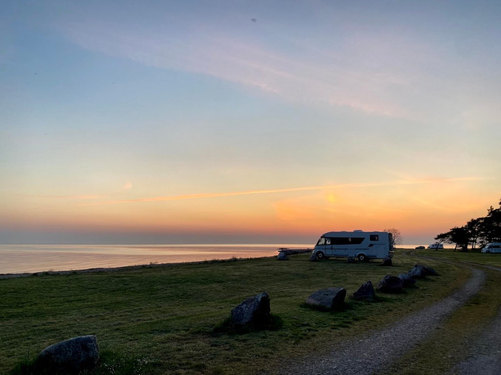 Jag hade först tänkt att vi skulle åkt ännu längre söderut, till någon av ställplatserna där nere, men så råkade jag få se att på Sandviks camping i Degerhamn kunde man inte komma närmare havet! Och vi älskar ju havet… 😍