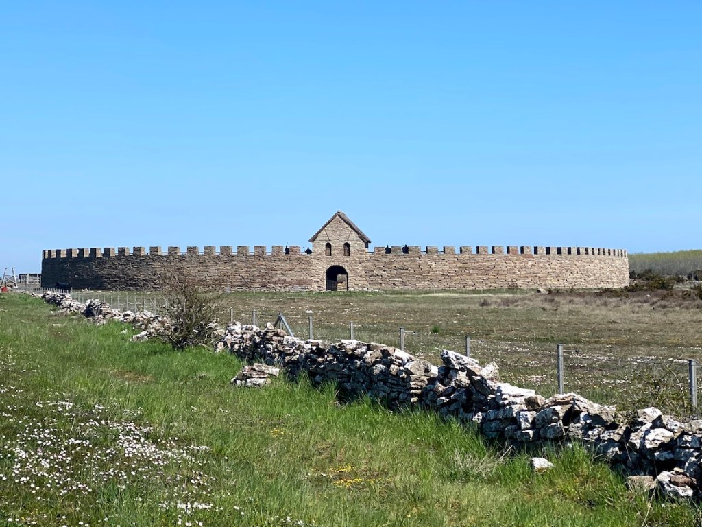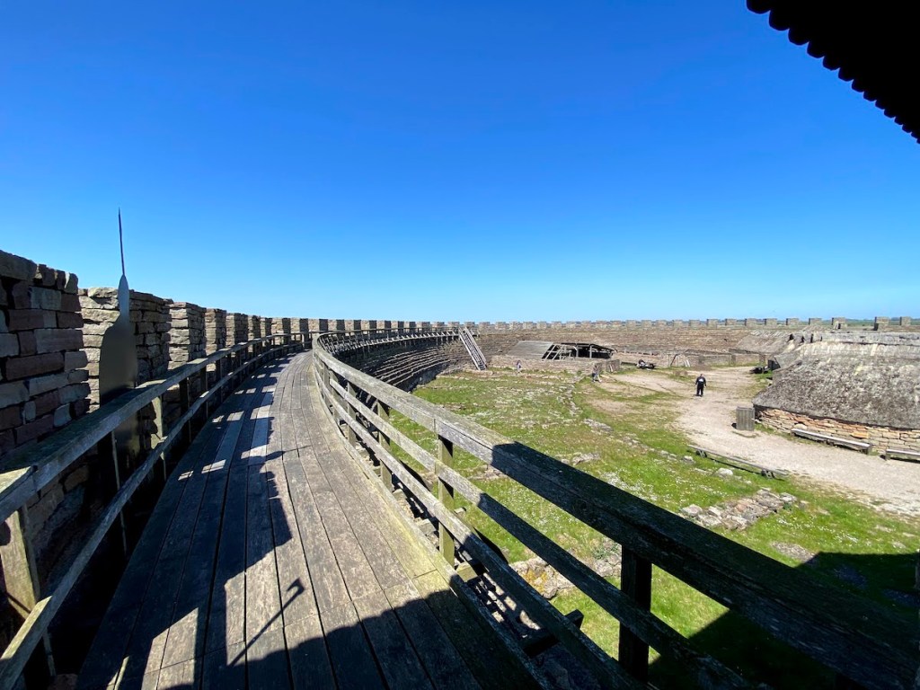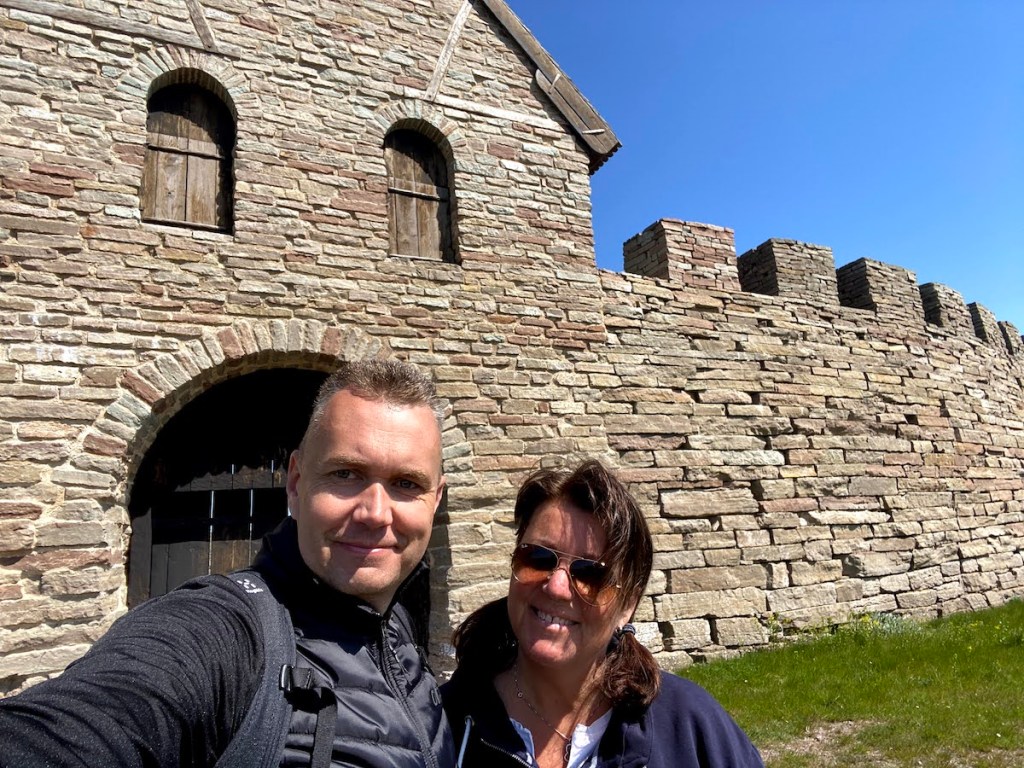 När vi hade 1 km kvar var vi enormt lyckliga!! (nu var det ju bara 1,7 mil tillbaka oxå 🙈…) Men först skulle vi insupa lite historia från järnåldern närmare bestämt…… efter vi kommit av cyklarna… AJ AJ AJ!!!! Det är ju inga problem att cykla med elcyklar, man snarare åker än cyklar 😄 – vi var alltså inte direkt utpumpade av det!!! Däremot hade vi enormt ont i röven (ursäkta språket, men så var det)!!!😖