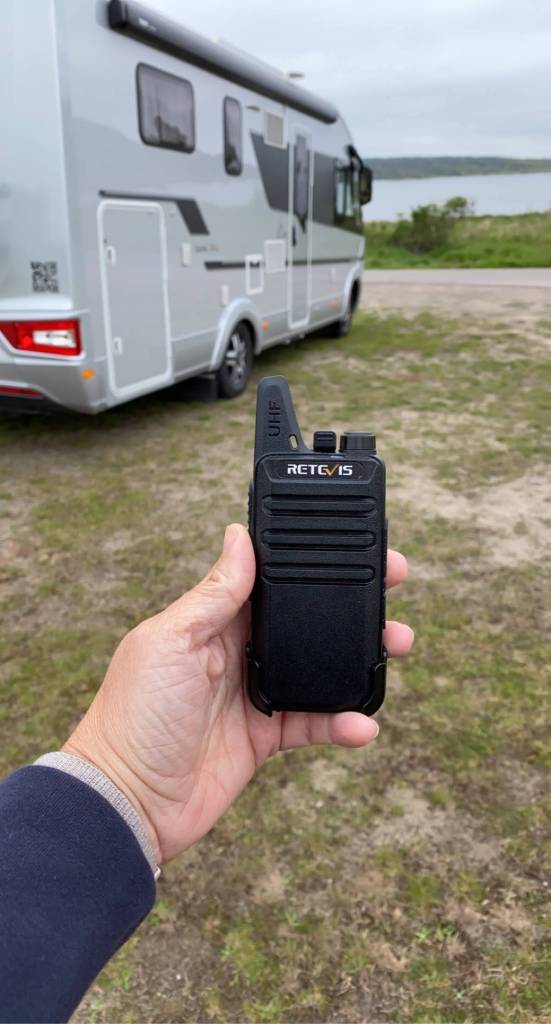 Detta var en rätt oplan plats och vi fick trixa lite för att det skulle bli nått sånär plant. Micke har köpt en komradio så att jag ska kunna prata med honom när han backar – han tycker jag vinkar och gestikulerar otydligt 🙄.