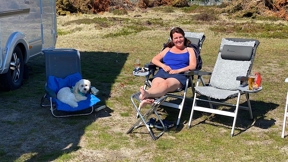 När vi väl kommit på plats, och gått en liten runda med Binkan såg vi att vi fått grannar – det hade kommit en husbil till! 🤣🤣🤣 Nu hade Bosse och Susanne överraskat oss och glatt oss med deras sällskap 😜.