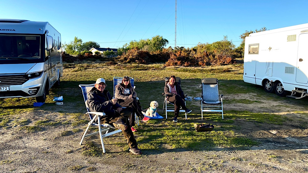 Efter att som vanligt velat bort oss från den utmärkta slingan och gått ett par kilometers omväg, var vi till slut tillbaka ”on track”. Då sprack himlen upp och det blev strålande sol. Vi trampade ”hemåt” och satt oss utanför husbilarna och bara njöööööt 🥰.