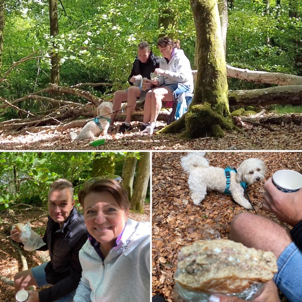 Ett nedfallet träd i solen fick duga – men shit va kallt det var!!! Picknicken som bestod av Hönökaka med en gegga emellan av ägg, tonfisk, chilisås, rödlök, dill och rysk yoghurt, till det vuxenfestis, som intogs fort som tusan. Fick ställa mig upp och göra åkarbrasor emellanåt – e det verkligen juni??? 🥶