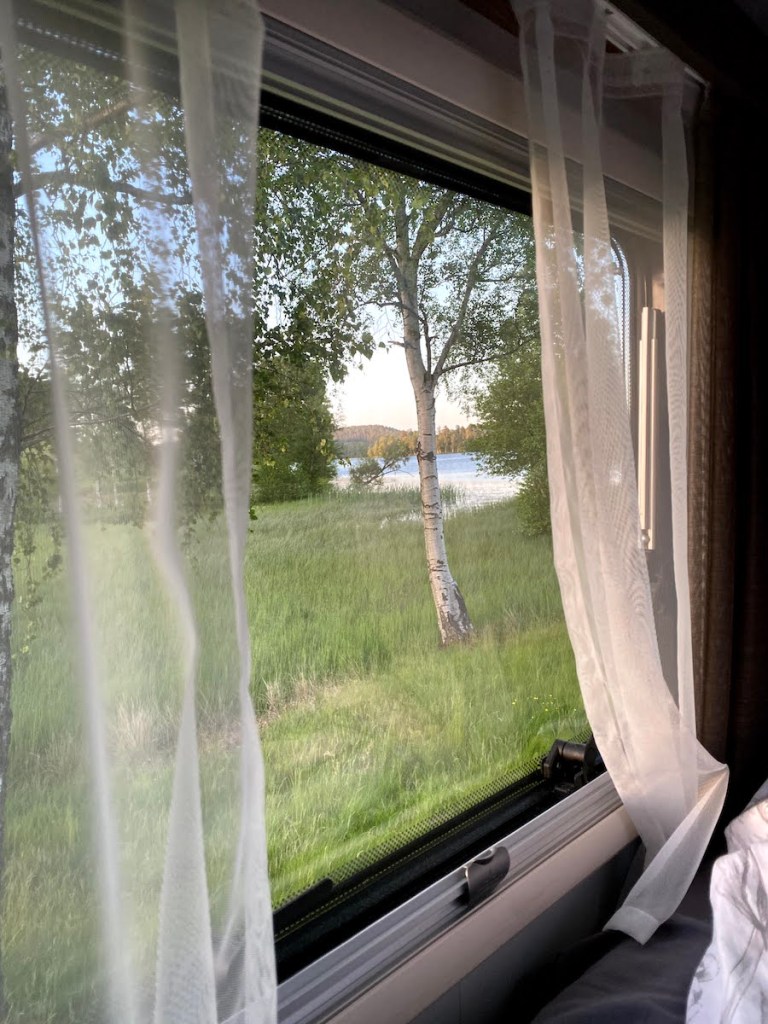 Alltså…. vilken sovrumsutsikt! Detta är ju verkligen en bild på Svensk sommar!!! (men det syntes inte på kortet att det blåste 19 m/s!!!🙈). Låg länge och bara tittade, utan att vilja dra för!🥰