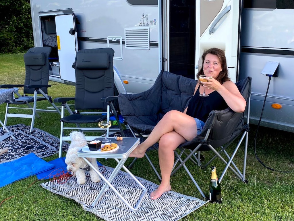 När vi närmade oss ”Hille” mörknade himlen – blixt och dunder utan dess like!!! Men det drog över lagom till potatisen var kokta, så vi tog ut markisen och flyttade ut.