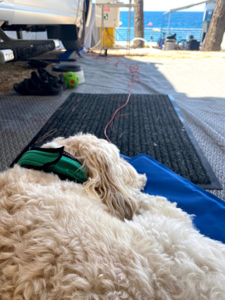 Binkan har fått liten bekymmer med värmen. Vi duschar och kyler ner honom så mycket vi kan för att hålla honom sval. Men han är hängig och vill inte äta 😞. Jag köpte med ett par burkar ”godis-mat” i fall om att han blev dålig i magen, och det åt han lite av i morse i alla fall.