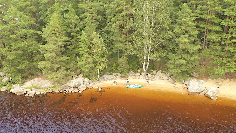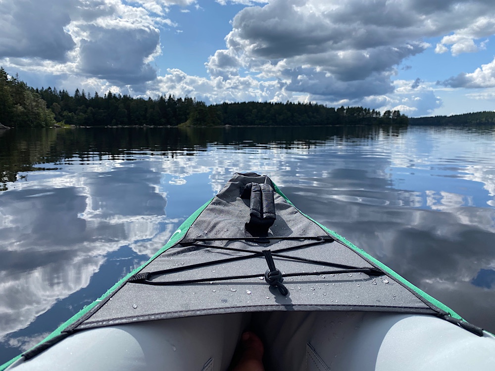 Det var fler än vi som paddlat dit (man kan även hyra kanoter på campingen), så första platsen var ”upptagen” – vi paddlade vidare runt ön. Även där var det folk, så det där med öde ö var ju bara snack 😜