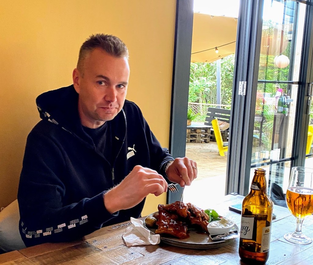 Micke fick in sin sist, när kyparen kom sa han: ”en vegetarisk ribbs”
