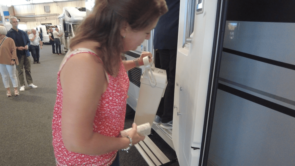 De har flyttat vattentanken framåt vilket gör att man kan lasta mer där bak (i vikt alltså) – men ändå finns dekalen där bak som säger max 150 kg???