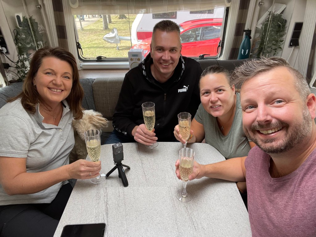 Grilla var inte att tänka på så vi tog beslutet att gå in mot Torekov och till pizzerian som ligger i hamnen. Även Tommy och Sara hade anslutit till firandet av Husbilsresors 2.0 premiär 🥳