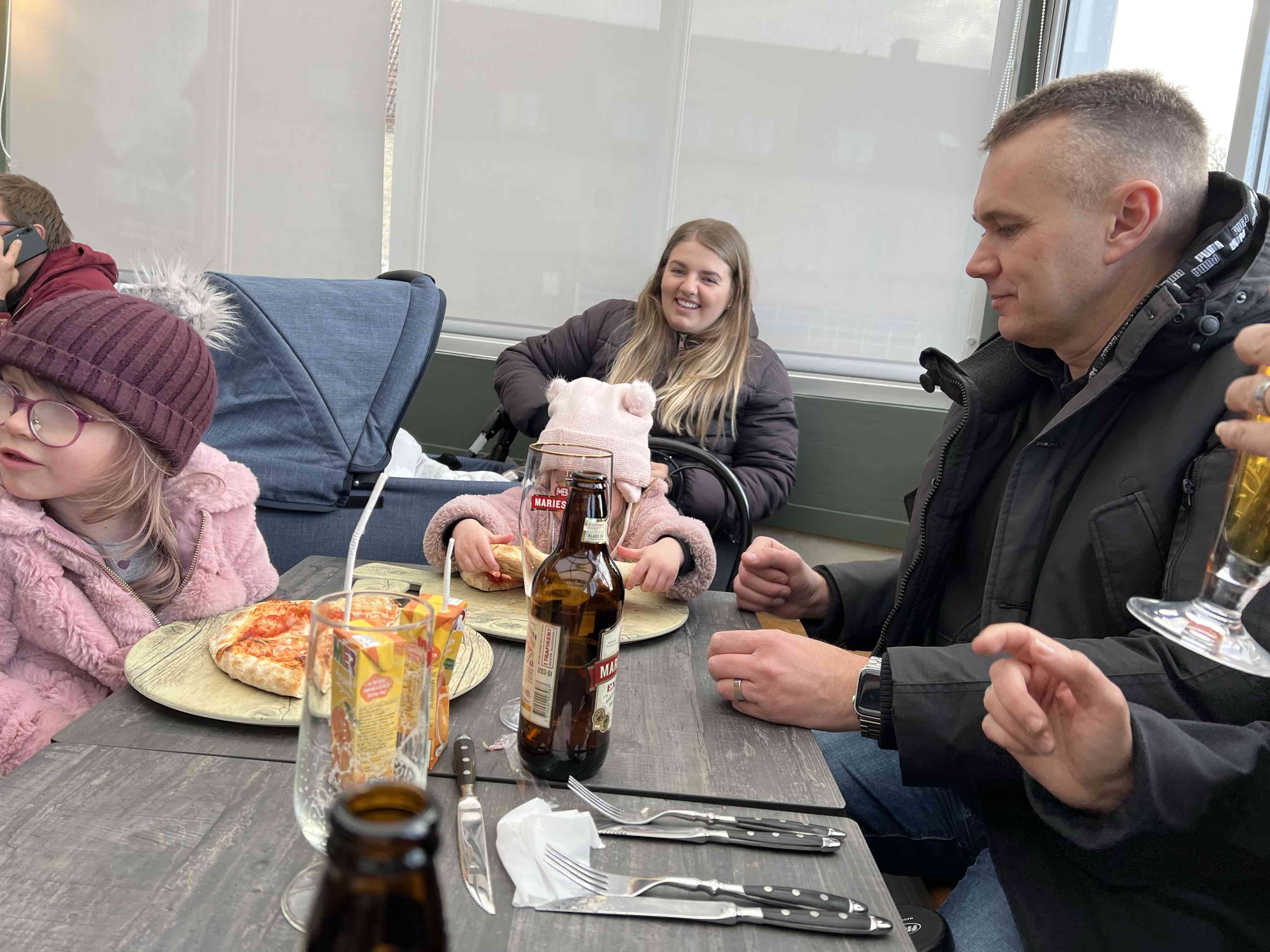 Vi tog upp halva serveringen 🤪. Alla åt med god aptit! Jösses vilka goda pizzor!!! Bland de bästa jag ätit faktiskt 😍. Piratens pizzeria i Torekov – glöm aldrig deee! 🤩
