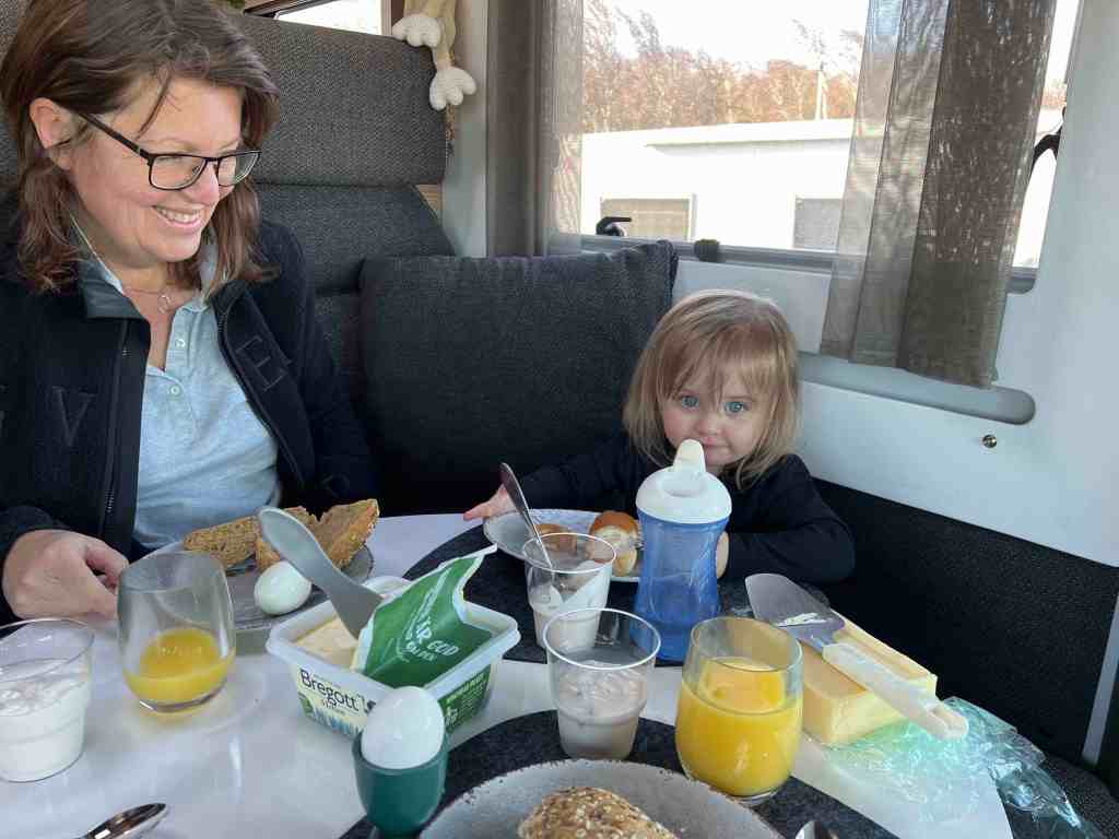 Sen, lämnade vi tillbaka henne till mamma och pappa som satt mitt i frukosten. Alla hade sovit jättegott 🥰 (vaggade till sömns av ”vinden”).