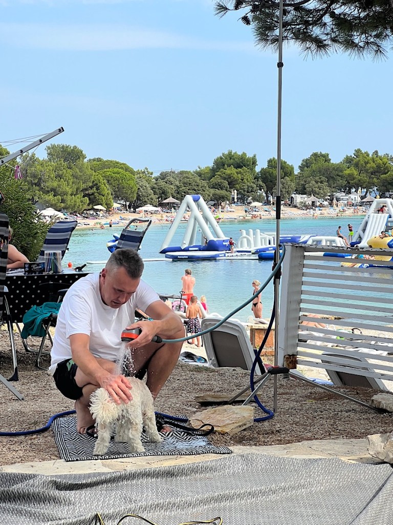 Duschen är oxå en höjdare! Bingo använder den mest…. mer eller mindre lycklig över detta….
