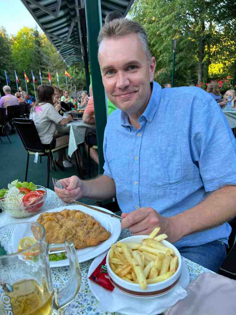 Humöret på Micke steg ännu mer när han fick se att de även serverade wienerschnitzel!!!