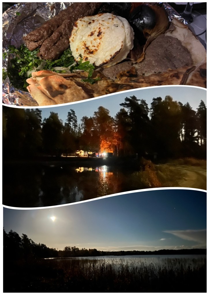 När vi väl tryckt i oss allt knackade det på dörren och där stod en kille och gav oss en tallrik syrisk (?) mat. De hade nämligen kommit 5-6 stycken killar under eftermiddagen och lassat upp mat vid grillplatsen + en extra grill som de lagat mat i, säkert till 20 pers! Fast de var bara 5-6 st…..?