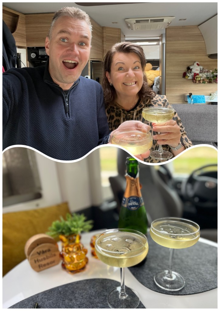 SKÅL 🥂 🍾och stort GRATTIS till den nya husbilen! 🚐 Ni som använder er så mycket är väl värda den. 😊 👍🏼 Så spännande, men förstår att det blir lite att fixa nu, man fattar inte hur mycket prylar man har med sig förrän man ska tömma, 🫣 men det är ett kärt besvär. 😊 Många nya utmaningar för Micke med allt det tekniska, men det gör han nog så gärna. 😉 Vi har ställt in vår bil nu och längtar redan till våren. 🌱🌿