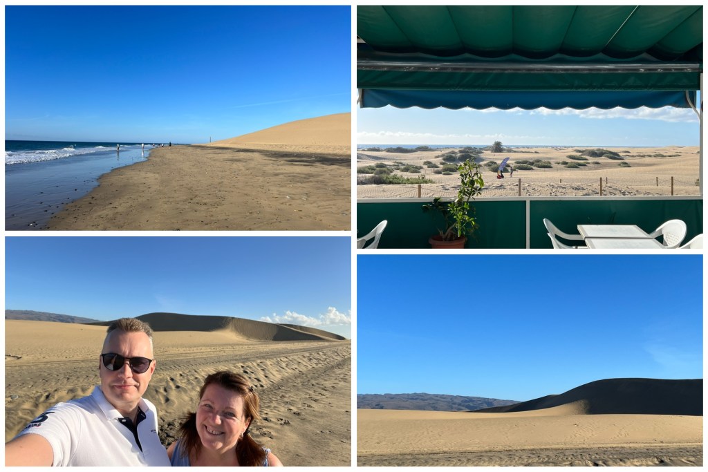 Längs med stranden var det väl helt ok men från Mirador de las Dunas och tillbaka till Meloneras pulsade vi i sand 😅, vi gick den dagen 23 000 steg!!!