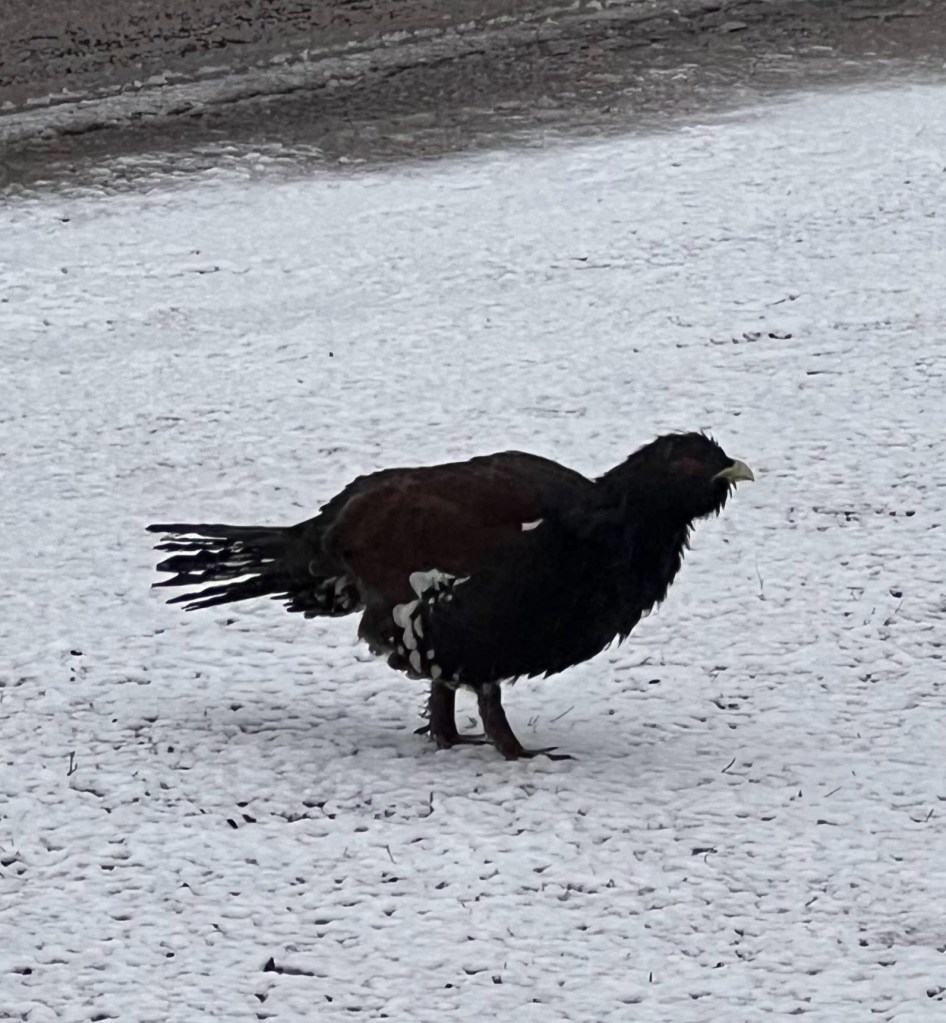 Har aldrig sett en livs levande tjäder och tänkte att den blir väl rädd när vi öppnar dörren, men nä nä nä den där pippin var inte rädd för nått! Man har ju hört om attackerande tjädrar så vi var lite försiktiga! Såg nog lite roligt ut när vi smög längs husbilen för att gå bort från den. Hoppades på att den inte satt på trappsteget när vi var tillbaka 🤣